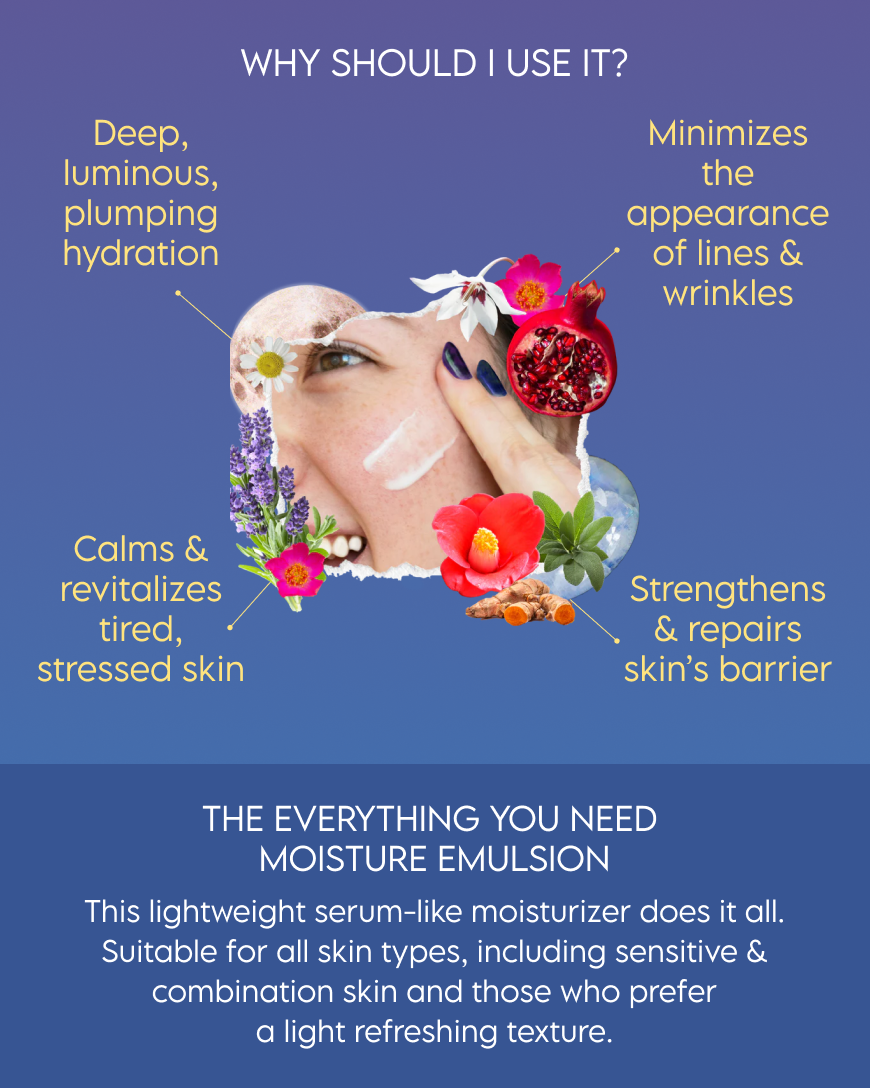 This serum-like emulsion is powered by 7 high-performing ingredients that soothe, hydrate, and leave the skin feeling more supple, with regenerative, anti-aging effects. It’s the perfect moisturizer for radiant skin, delivering a luminous, healthy glow.
